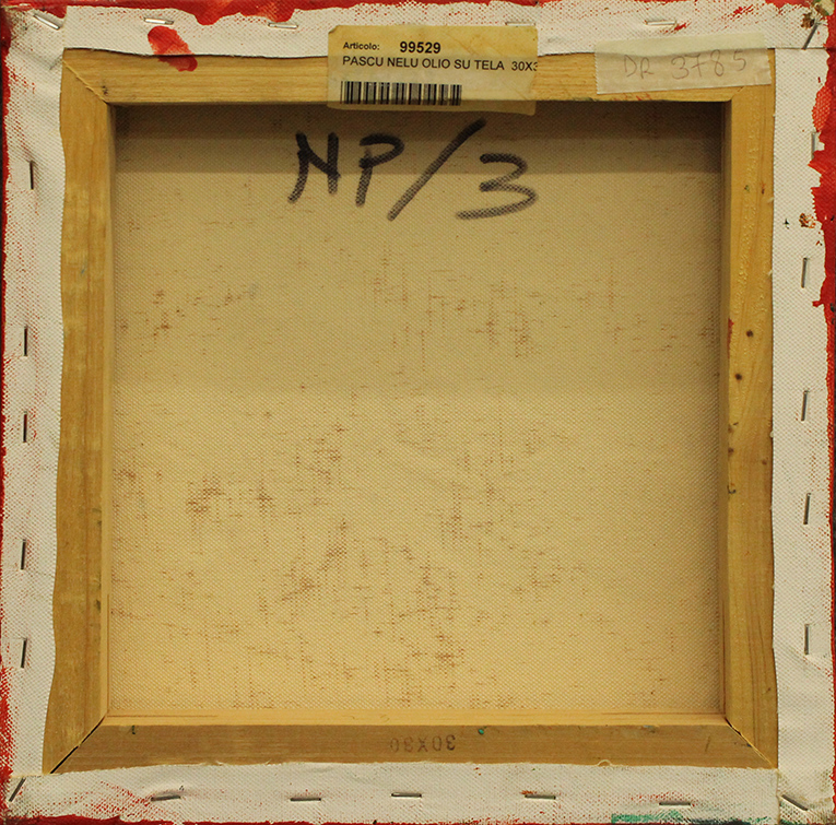 NELU PASCU, anni 2000, olio su tela, 30x30x3 cm, peso 0,60 kg. Al fronte: firma in basso a destra. Al verso: etichetta con informazioni. Autentica su foto dell'artista. Opera con certificato di provenienza della Daliano Ribani Arte. Opera senza cornice.