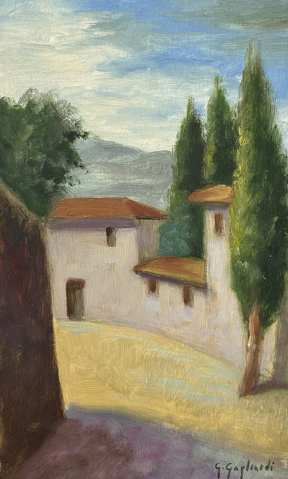 G.GAGLIARI, "Paesaggio", olio su tavola, cm 25x15. Al fronte: firma in basso a destra. Opera senza cornice
