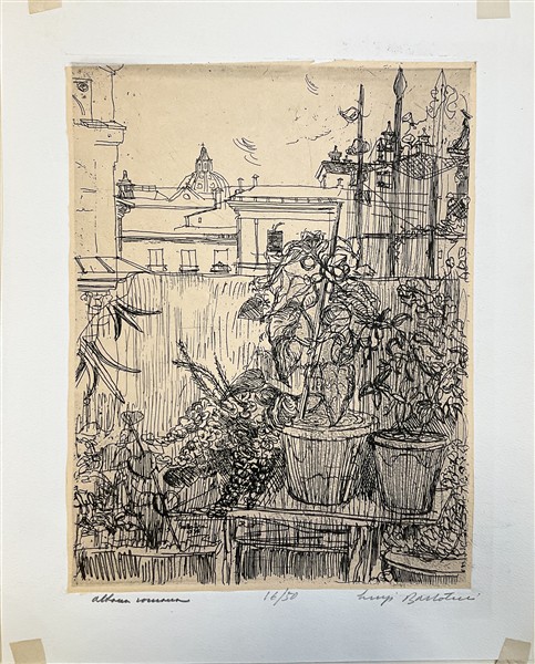 Luigi Bartolini "Il ponte" e "Altana romana" due acqueforti stampate su fondo O