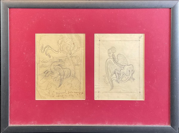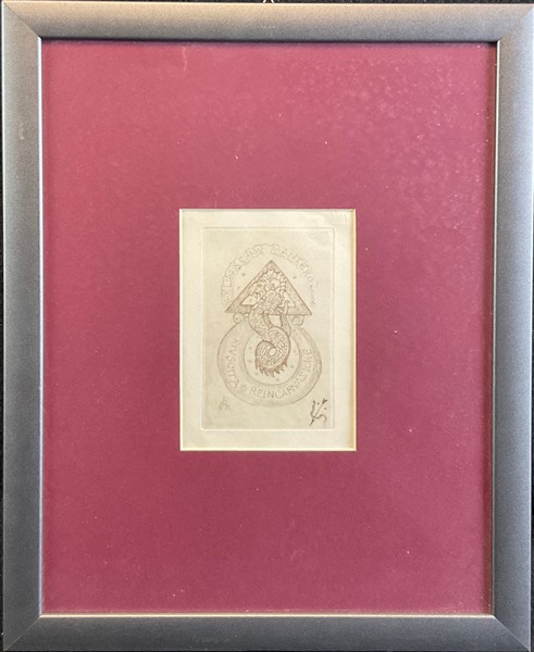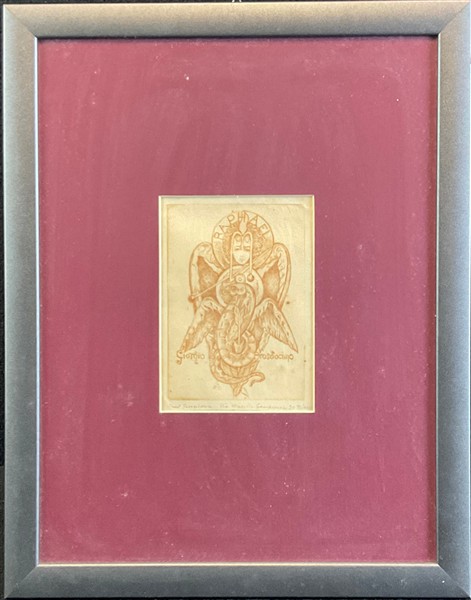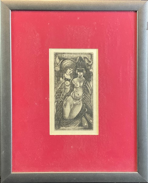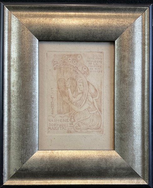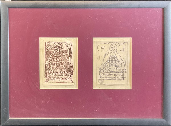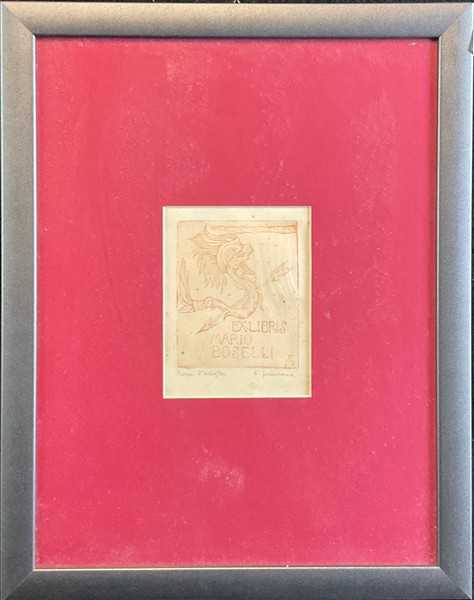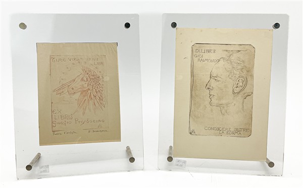 Lotto composto da cinque disegni a matita su carta e nove ex libris all'acquaforte di soggetto e misure diverse