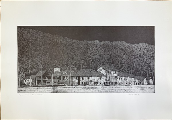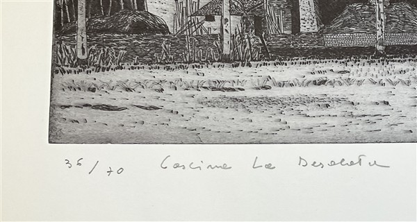 Federica Galli "Cascina La Desolata" 1991 acquaforte (lastra cm 39x79; foglio cm