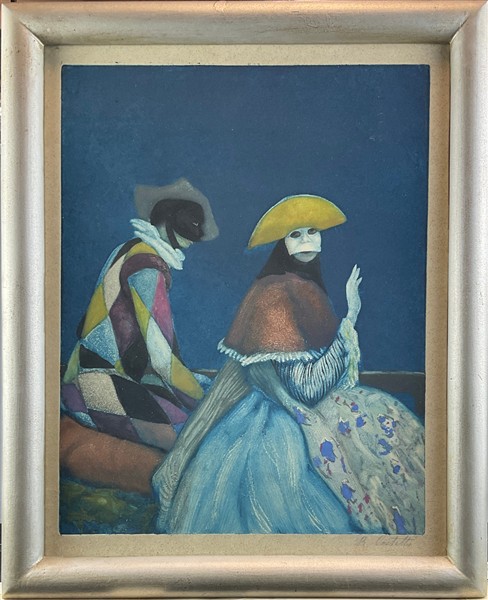 Romeo Costetti "Maschere veneziane" monotipo cm 50x40 firmato in basso a destra