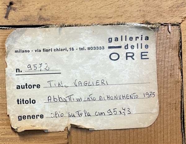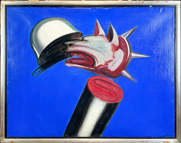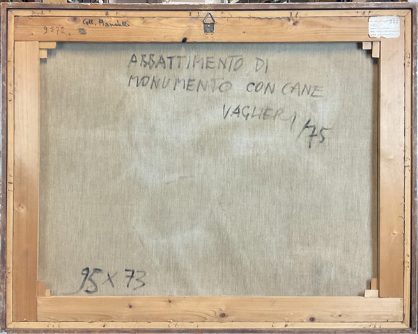 Tino Vaglieri "Abbattimento di monumento con cane" 1975 olio su tela cm 74x95 fi