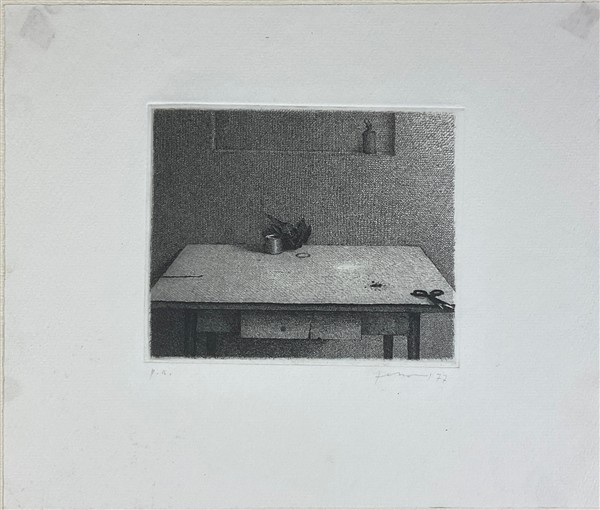 Gianfranco Ferroni "Poche cose sul tavolo" 1977 acquaforte - prova d'artista (la