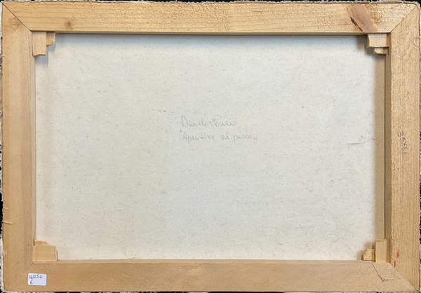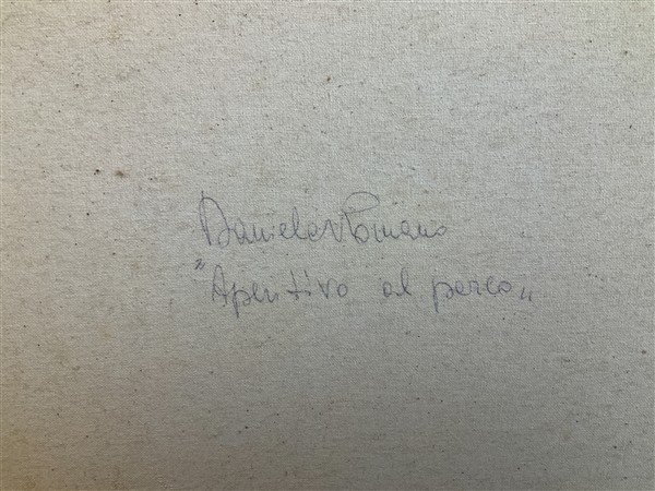 Daniela Romano "Aperitivo al parco" olio su tela cm 35x50 firmato e titolato al