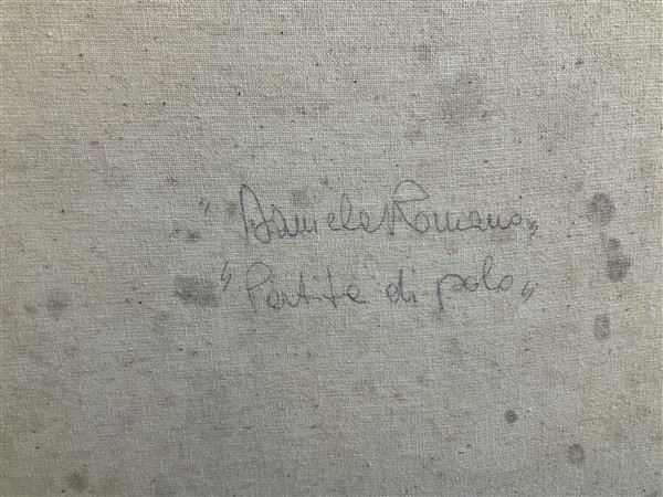 Daniela Romano "Partita di polo" olio su tela cm 35x50 firmato in basso al cent