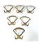 Lotto di sei appendiabiti da parete in fusione di ottone. Italia, anni '50. (difetti)