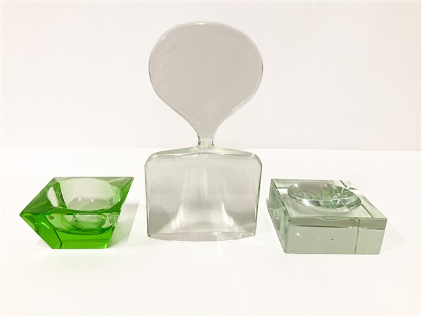 Lotto di due posacenere e un fermacarte in vetro. Italia, anni '70. (difetti)