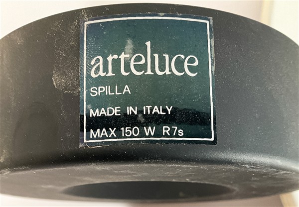 Lampada a plafone modello "Spilla". Produzione Arteluce, Milano, 1986. Metallo laccato nero e bianco. Recante marchio del produttore. (cm 74x23x41) (difetti)