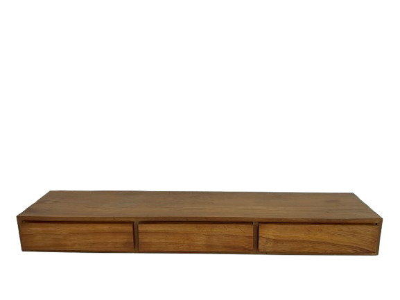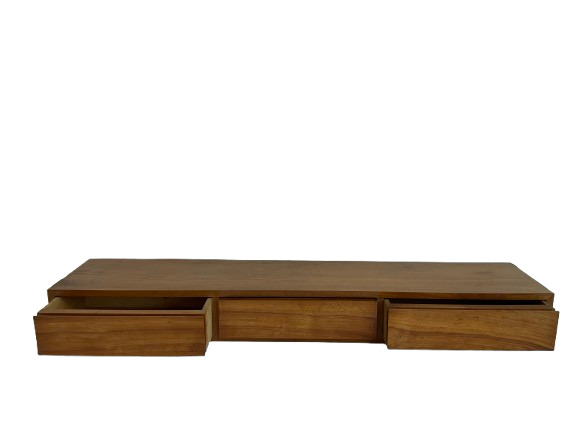 Mensola-console in legno impiallacciato con tre cassetti nella lunghezza. Italia, anni '60. (cm 135,5x15x29) (difetti)