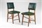 Coppia di sedie in legno chiaro massello e simil pelle verde. Italia, anni '50/