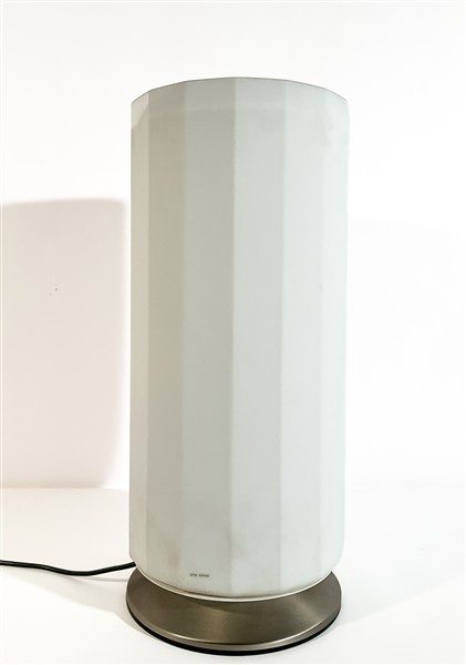Lampada da tavolo a quattro luci in metallo spazzolato e laccato bianco con diffusore in vetro opalino satinato. Italia, anni '80/'90. (h cm 56)