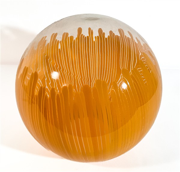 Paralume per lampada a sospensione della serie "Anemone". Esecuzione Venini, Murano, anni '70. Vetro soffiato cristallo a cannette arancioni
