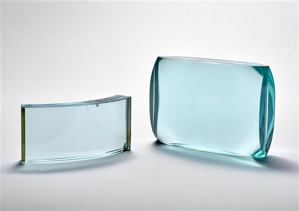 Presse papier portafoto. Italia, anni '50/'60. Cristallo molato verdino. Firmato a punta "GB". Unito a un altro portafoto. (cm max 22x15x6) (lievi difetti)