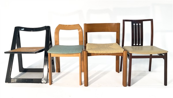 Lot 1993 | Quattro diverse sedie in legno di cui una di Aldo Jacober e Pierangela D'Aniell