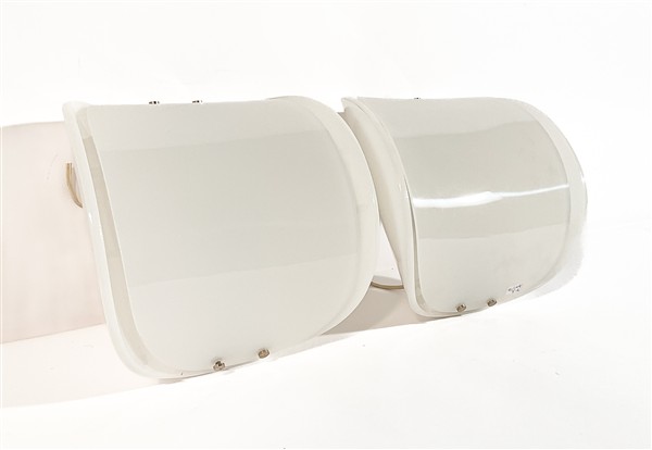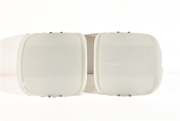 Coppia di applique in metacrilato bianco. Italia, anni '70. (h max cm 21)
