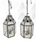 Coppia di lanterne in metallo e vetro incolore sabbiato e rosso trasparente. Pr