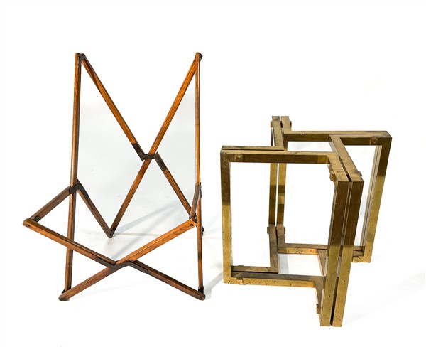 Lotto composto da una struttura di poltrona "Tripolina" in legno. Italia, anni '70. (cm 79x89x80) Unita a una base di tavolo in metallo dorato (cm 76x70x76). (cm 79x89x80) (difetti)