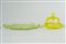 Lotto composto da un vassoio biansato di forma mossa e una burriera con coperchio in vetro verde uranio