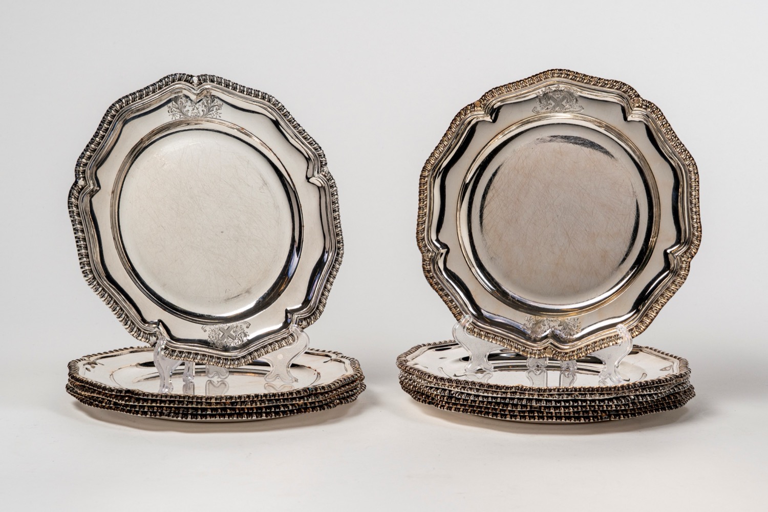 Dodici piattini a bordo mosso e stemmato