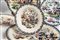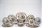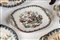 composto da 26 piatti piani, 13 piatti fondi, 13 piattini, 3 piatti da portata con misura a scalare, un alzatina, una piccola zuppiera e 4 vassoietti di diverso decoro.