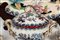 Difetti.composto da 26 piatti piani, 13 piatti fondi, 13 piattini, 3 piatti da portata con misura a scalare, un alzatina, una piccola zuppiera e 4 vassoietti di diverso decoro.