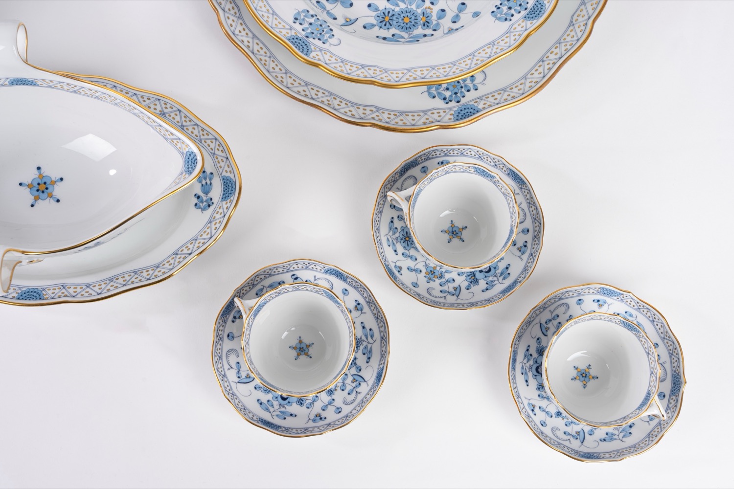 Importante servizio in porcellana da dodici "Blue Indianische Blumen", Meissen