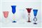 Lot 331 | Cinque calici in vetro soffiato trasparente e policromo blu e rosso, con dorature. Manifatture diverse, secolo XX