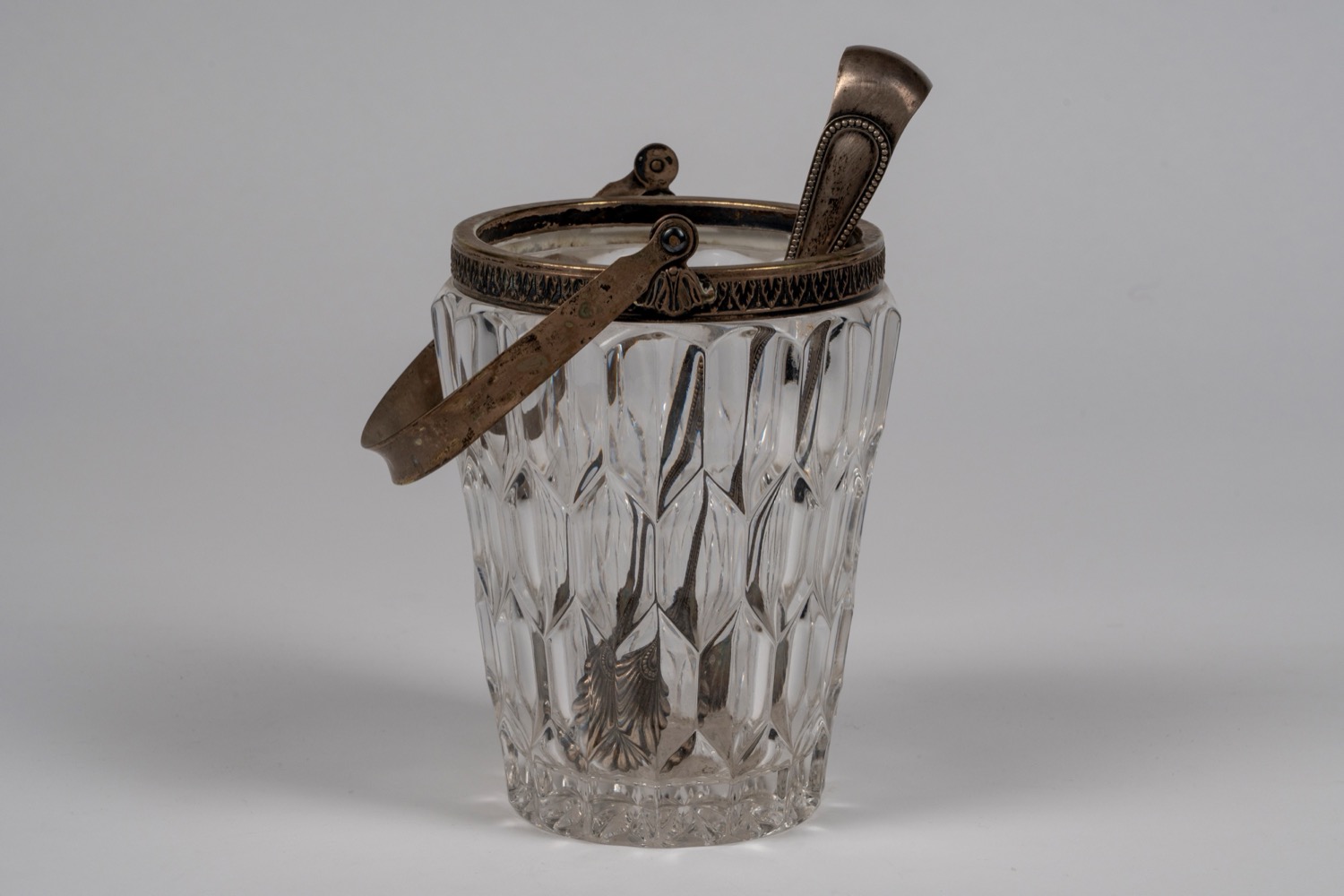 Secchiello per il ghiaccio in cristallo molato e argento con una pinza