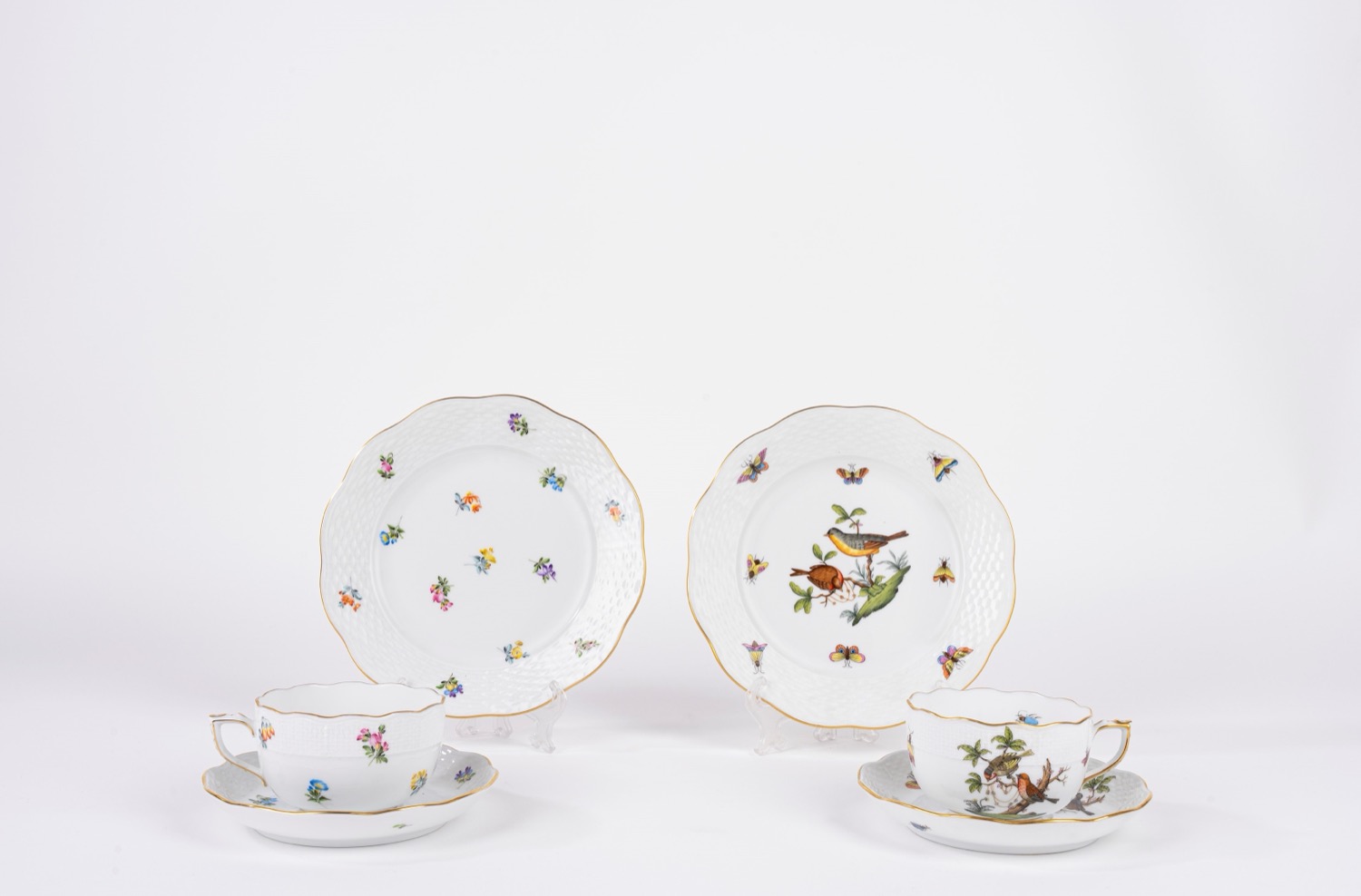 Lotto composto da due diverse tazze con piattino ed un piatto da dolce, Herend