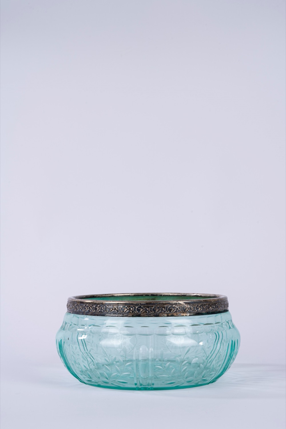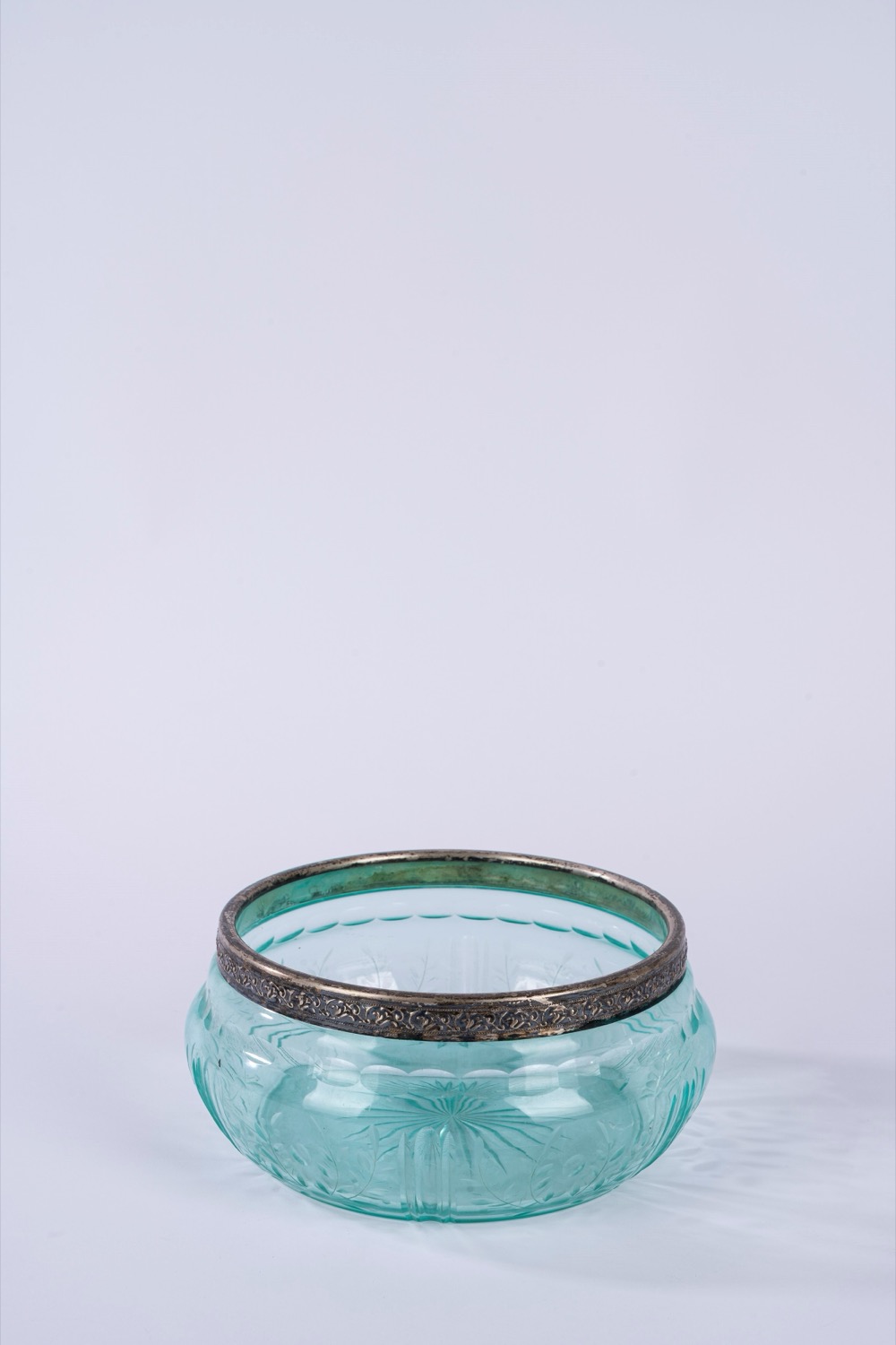 Lot 367 | Centrotavola in vetro verde con bordo in argento, Art Decò