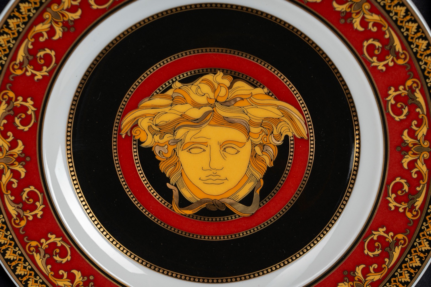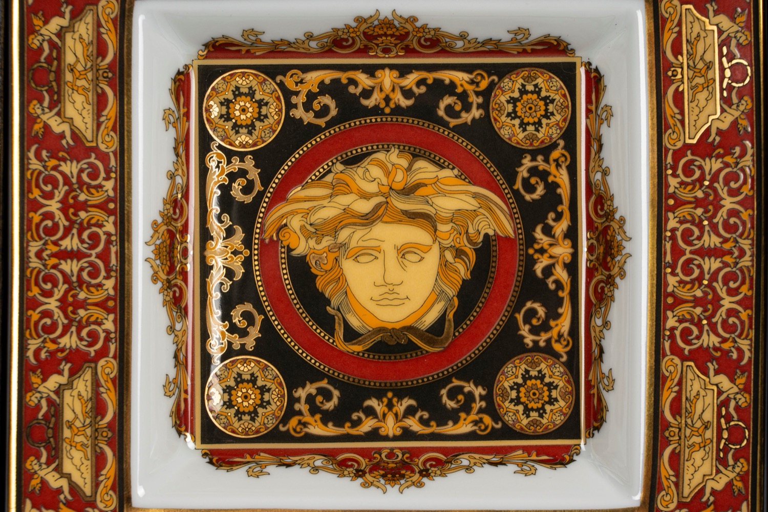Rosenthal studio-linie per Versace, Medusa, un piattino e un posacenere in porcellana policroma