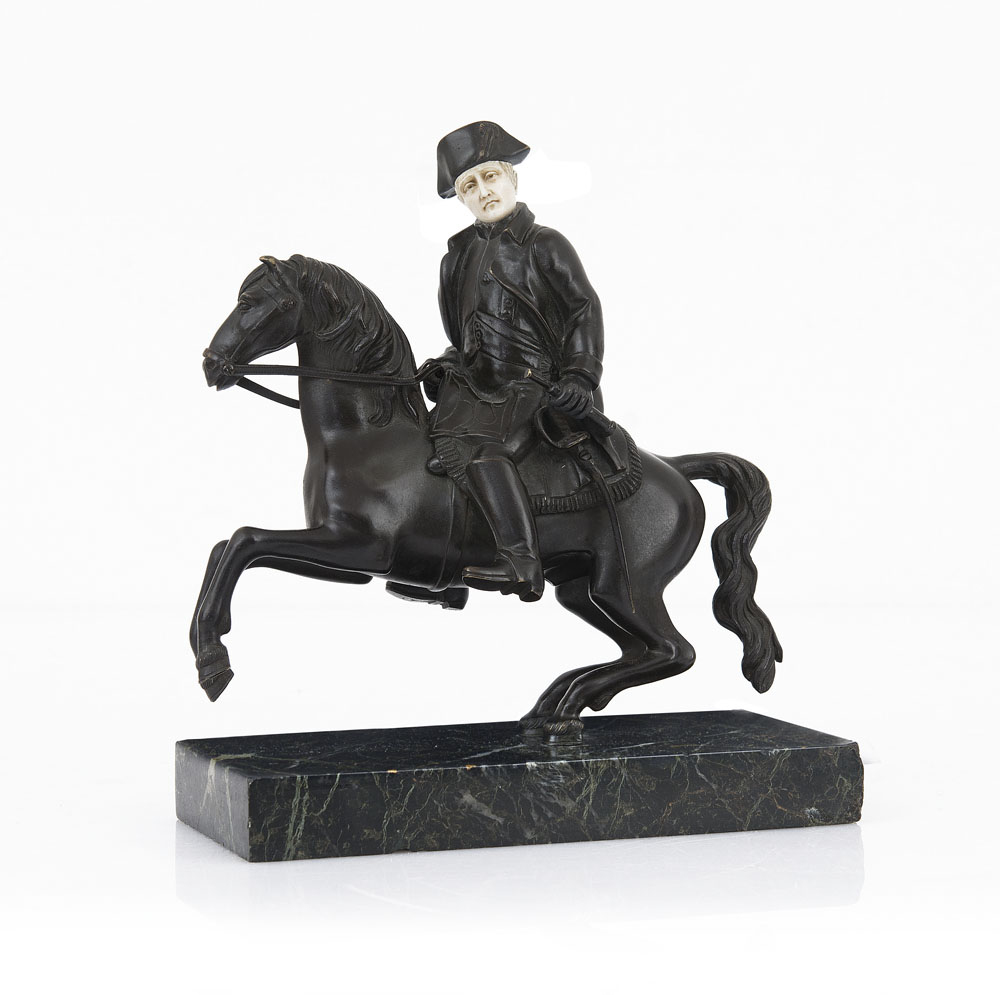 SCULTORE DEL XIX SECOLO Napoleone a cavalloBronzo e avorio su base in marmo,...