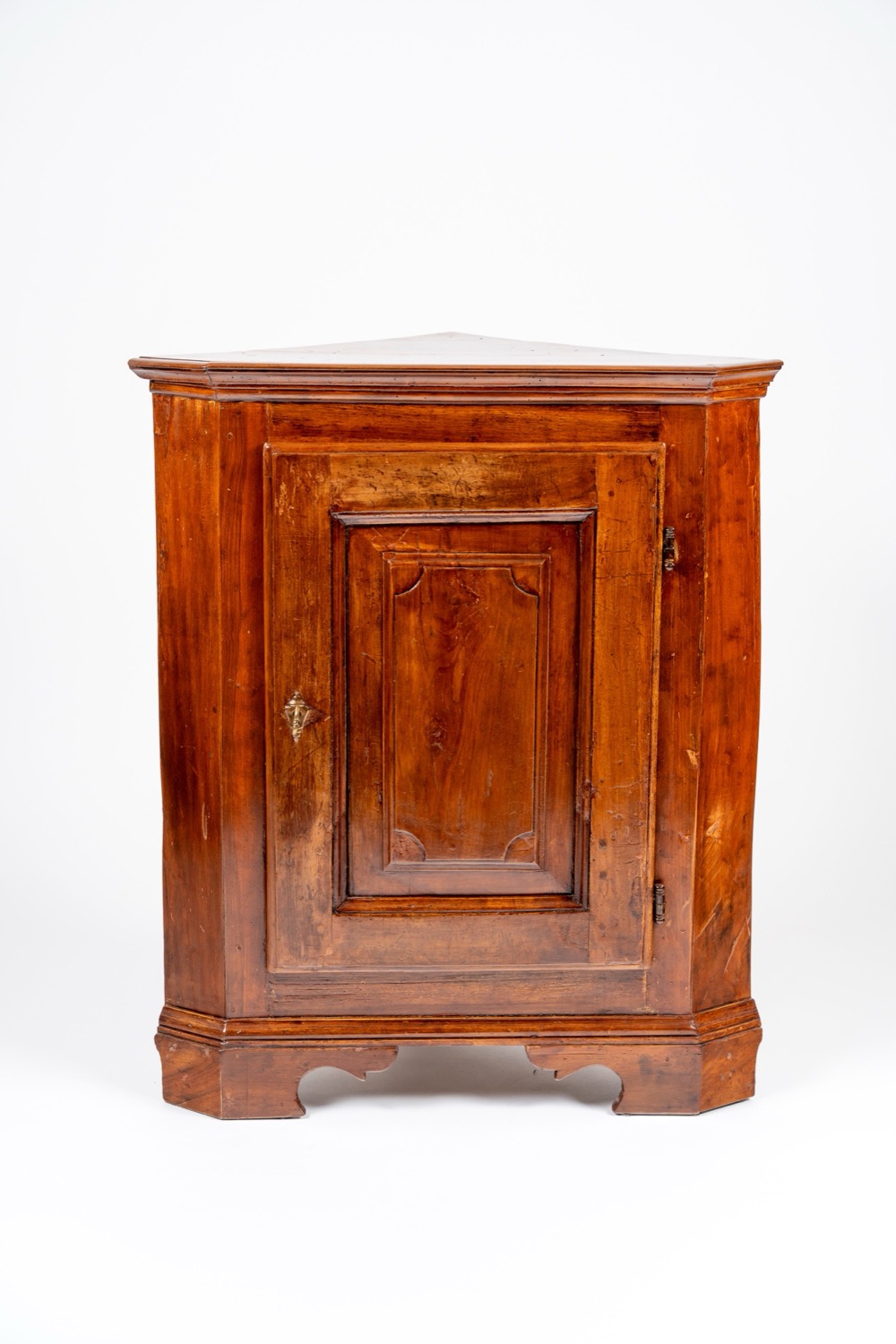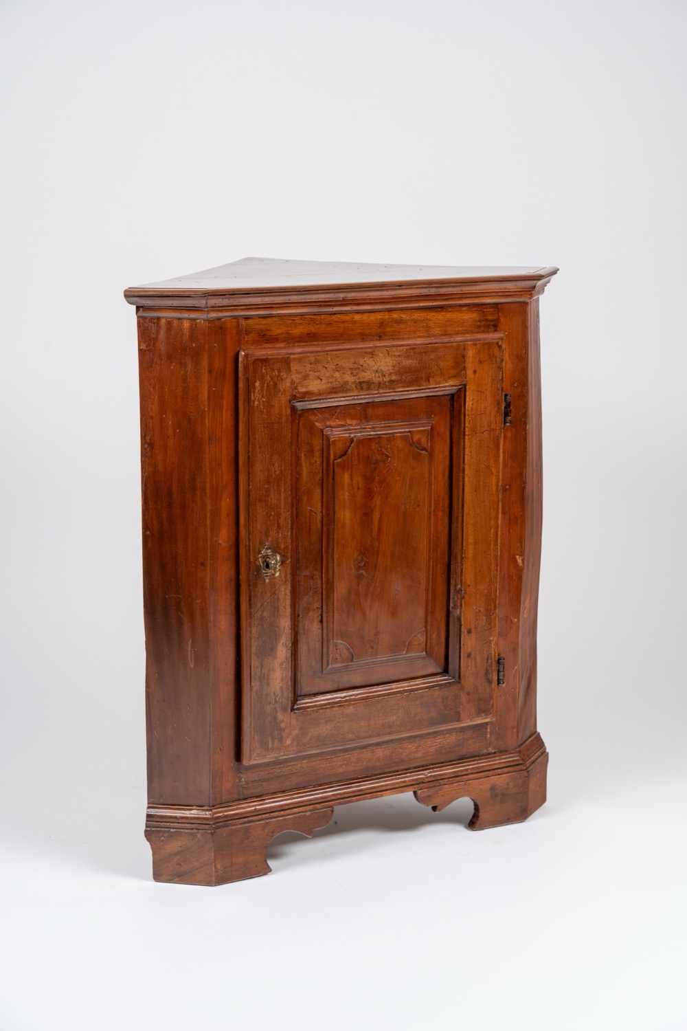 Lot 390 | Angoliera ad un'anta pannellata con piedi a mensola intagliata. Secolo XIX