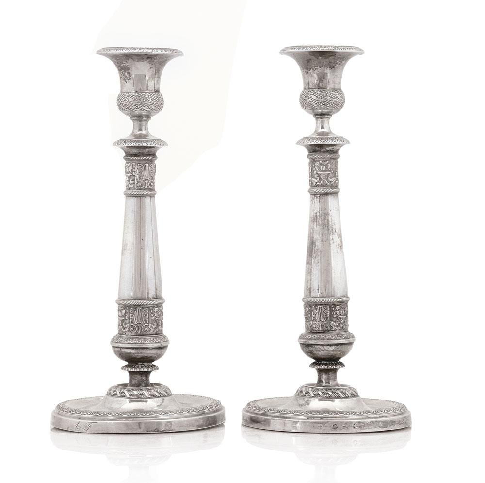 Lot 28 | ARGENTI D'EPOCA COPPIA DI CANDELIERI IN ARGENTO, MILANO, PRIMA META' XIX...