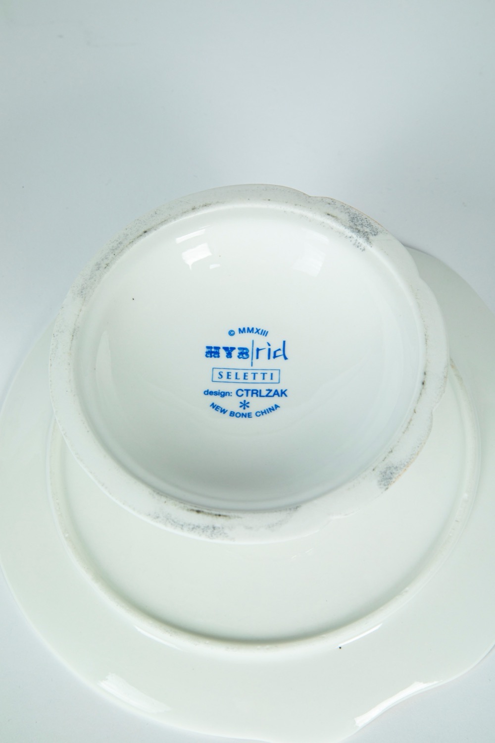 CTRLZAK Art & Design Studio × Seletti — Hybrid design. Due alzate di diverse misure e un vassoio da portata di forma ovale in porcellana bianca decorata in policromia e con dorature a motivo asiatico europeo. New Bone China.