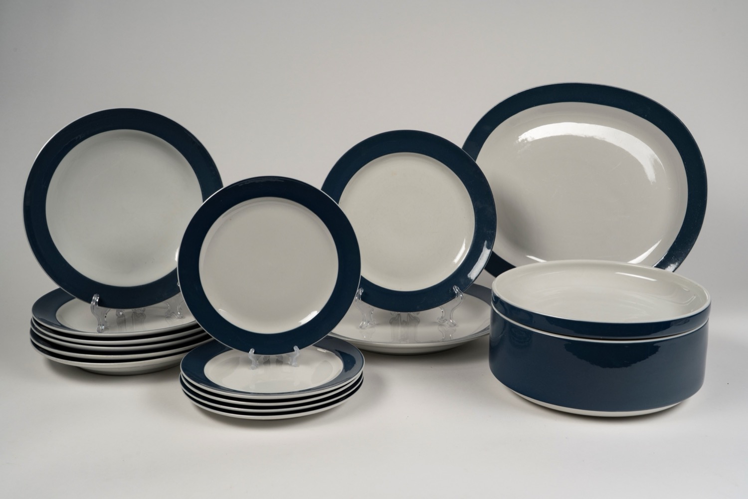 Servizio in porcellana bianca con bordo blu, Richard Ginori, anni '50 del Novecento