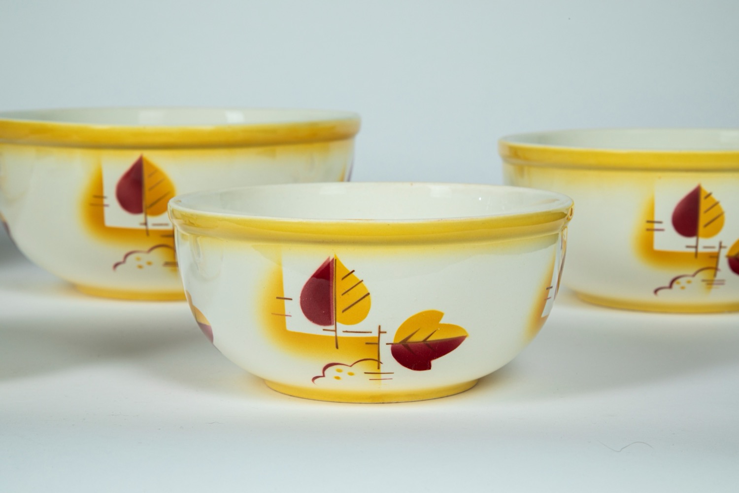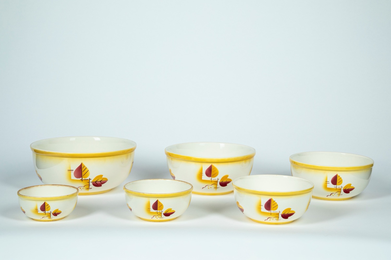 Lot 52 | Villeroy & Boch, Dresden. Set a nido composto da sei ciotole in ceramica policroma decorata nei toni del giallo e del rosso a motivo floreale stilizzato.