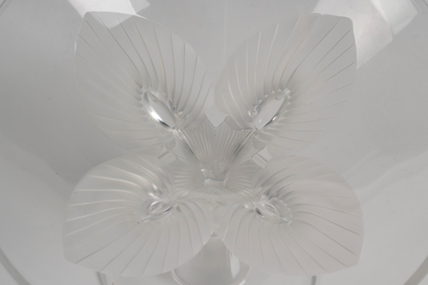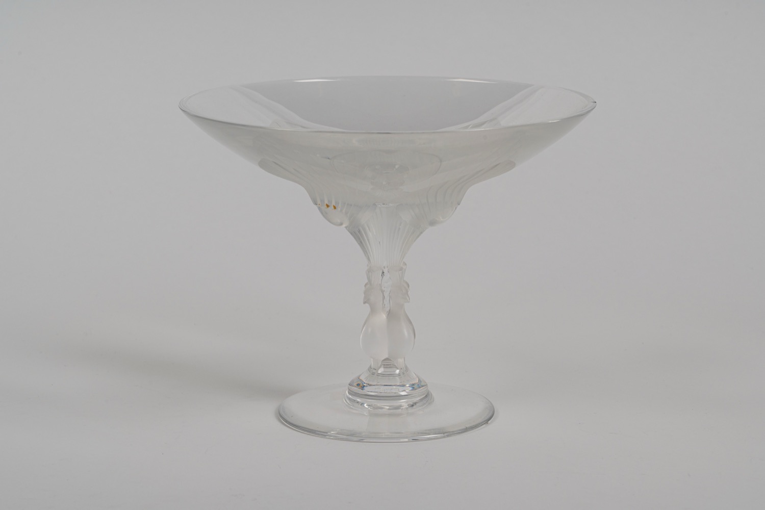 Lalique France Alzata in cristallo con stelo a quattro pavoni
