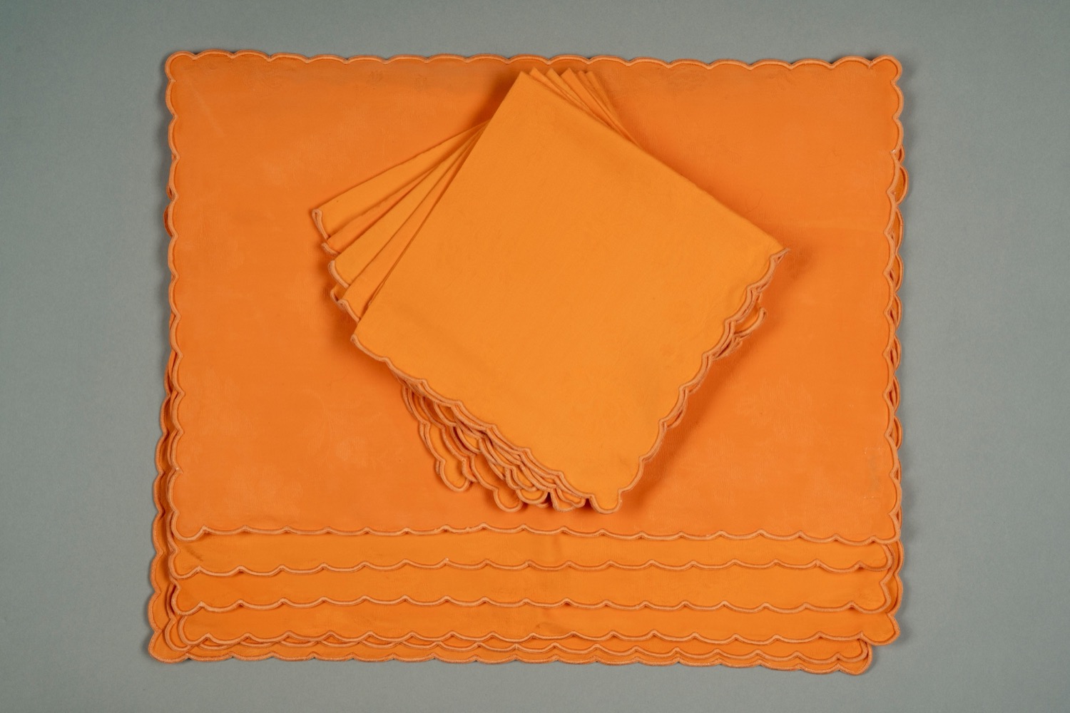 Sei tovagliette all'americana in raso di cotone con sei tovaglioli in fiandra arancioni