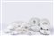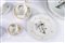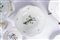 29 piatti piani (sottopiatti, d cm 26), 18 piatti fondi (d cm 26), 18 piatti piani da frutta (d cm 21), 18 piatti piani da dolce (d cm 18), 2 piatti piani grandi da portata, 1 piatto fondo grande da portata, 1 piatto fondo grande ovale, 1 piatto fondo grande per insalata, 1 zuppiera media, 1 zuppiera grande, 1 piatto ovale grande da pesce, 2 piatti ovali da contorno, 1 piatto ovale da maionese, 11 tazzine da caffè con 12 piattini, 11 tazze da tè con 12 piattini.