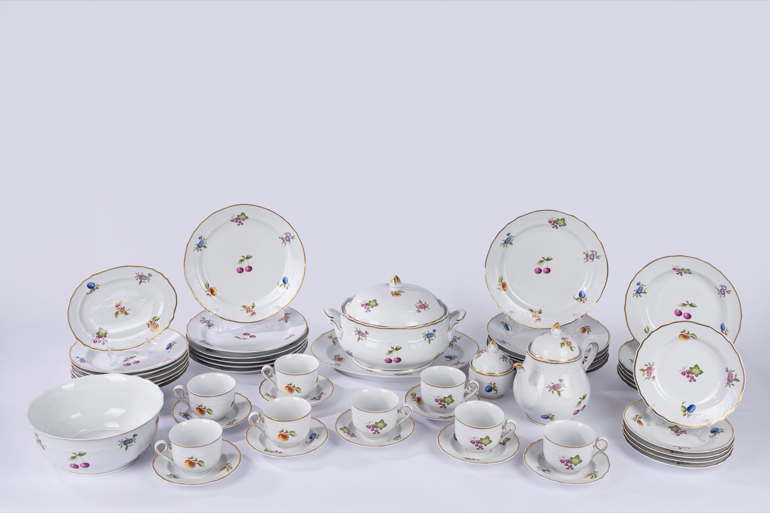 Servizio in porcellana con decoro a frutti, Danubio, Ungheria