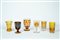 Sei bicchieri in cristallo e vetro trasparente e giallo paglierino decori incisi a motivi di flora e fauna, Different manufactures, 19th-30th century