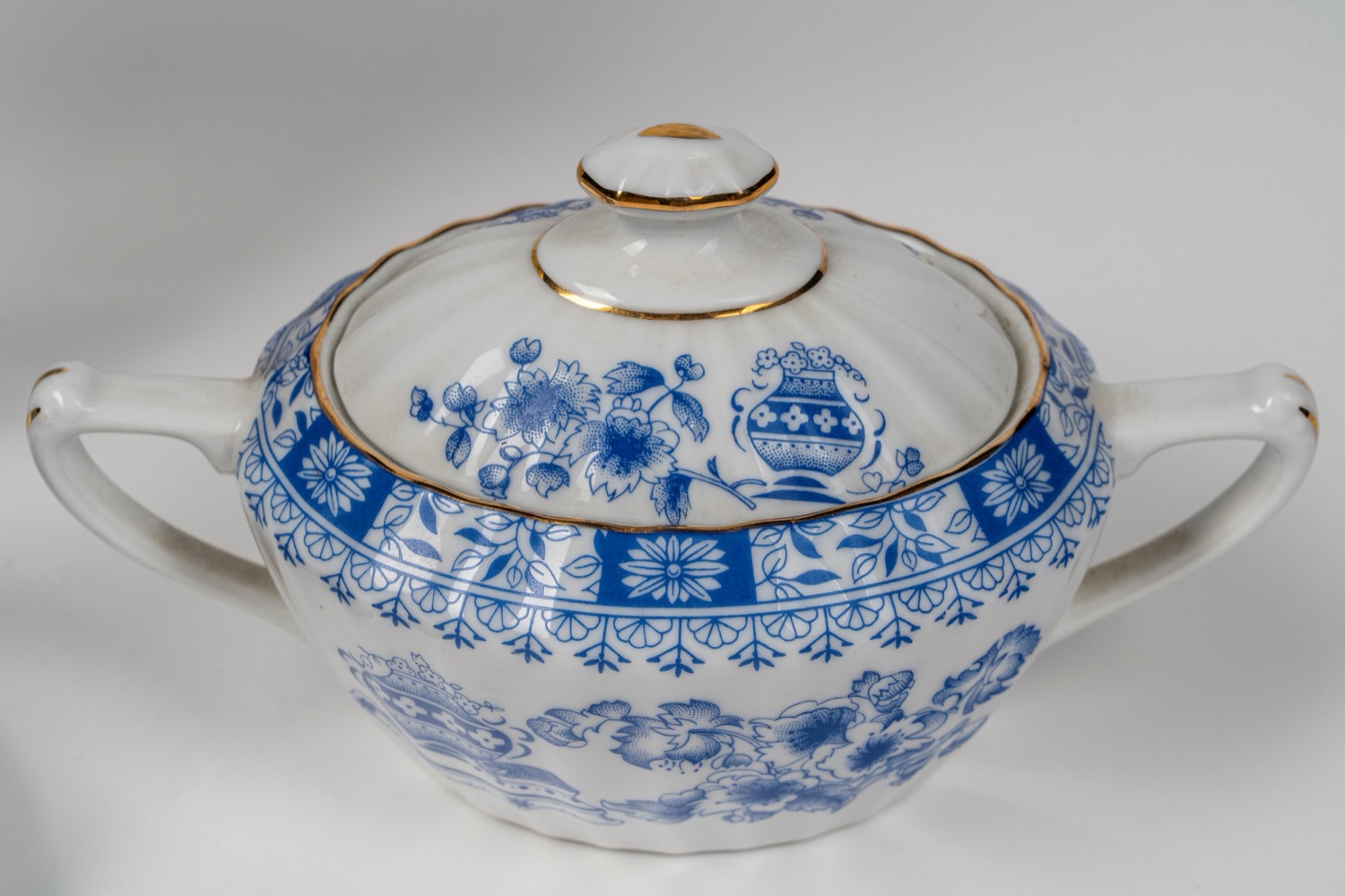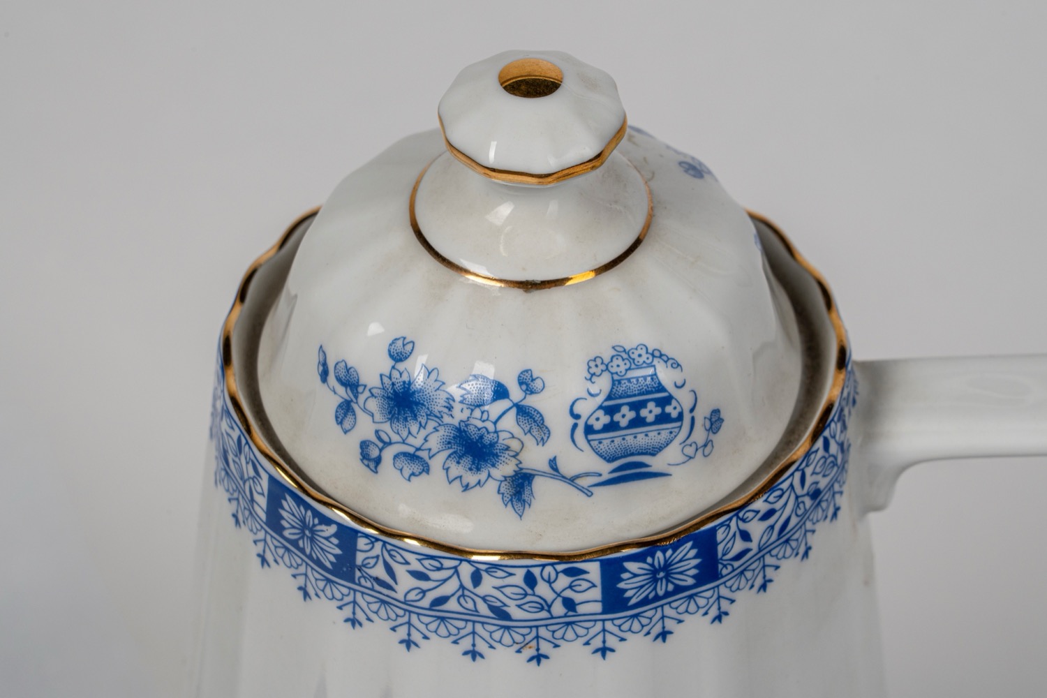 Lot 111 | Servizio da caffe tete-à-tete in porcellana bianca costolata con profili dorati con decoro all'orientale in blu, Seltmann Weiden, Bavaria Germania