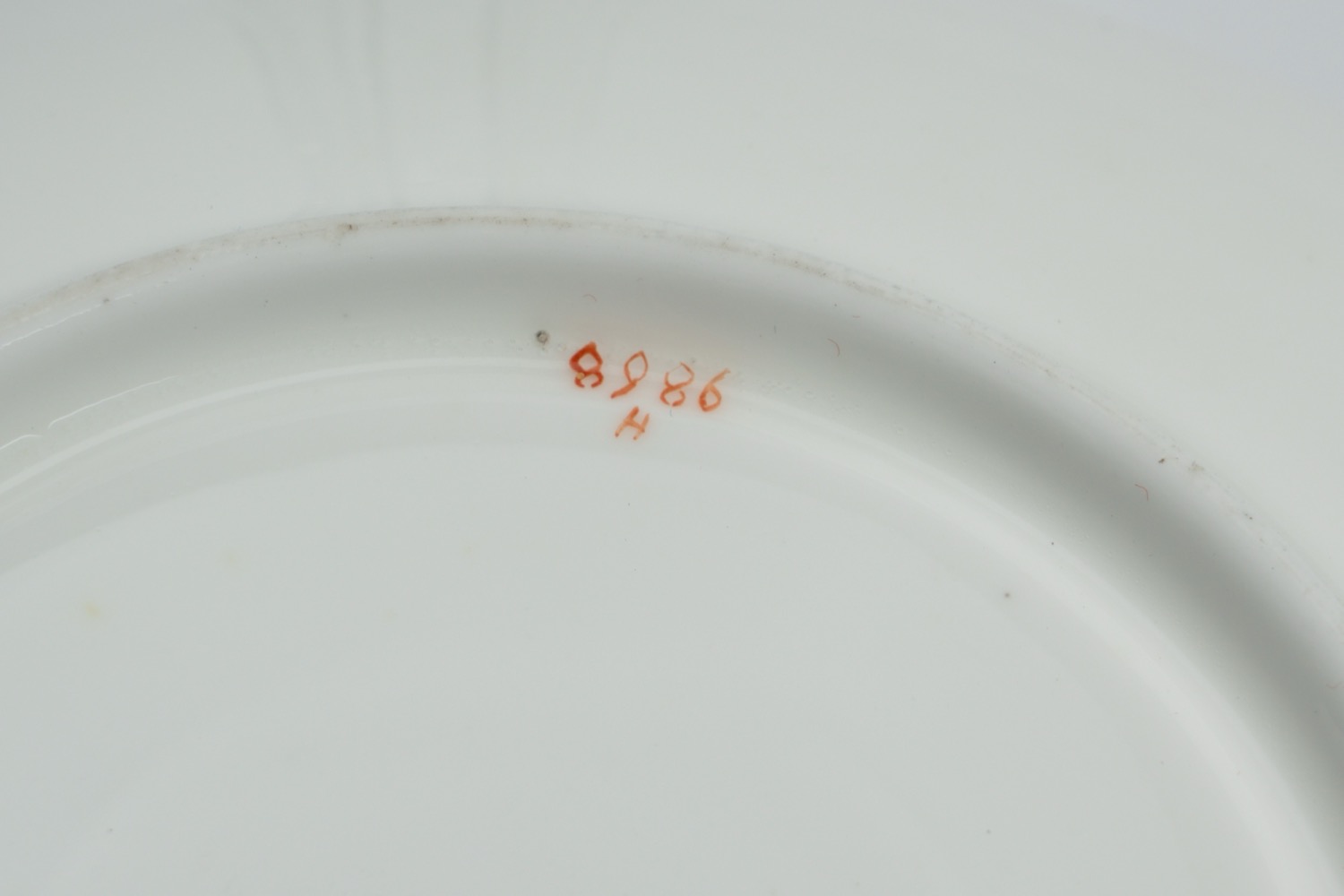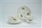 Tazze poggianti su piede modanato circolare, con ansa a doppia voluta fogliata intrecciata. Numerale dipinto in rosso ferro.Tazze poggianti su piede modanato circolare, con ansa a doppia voluta fogliata intrecciata. Numerale dipinto in rosso ferro.
