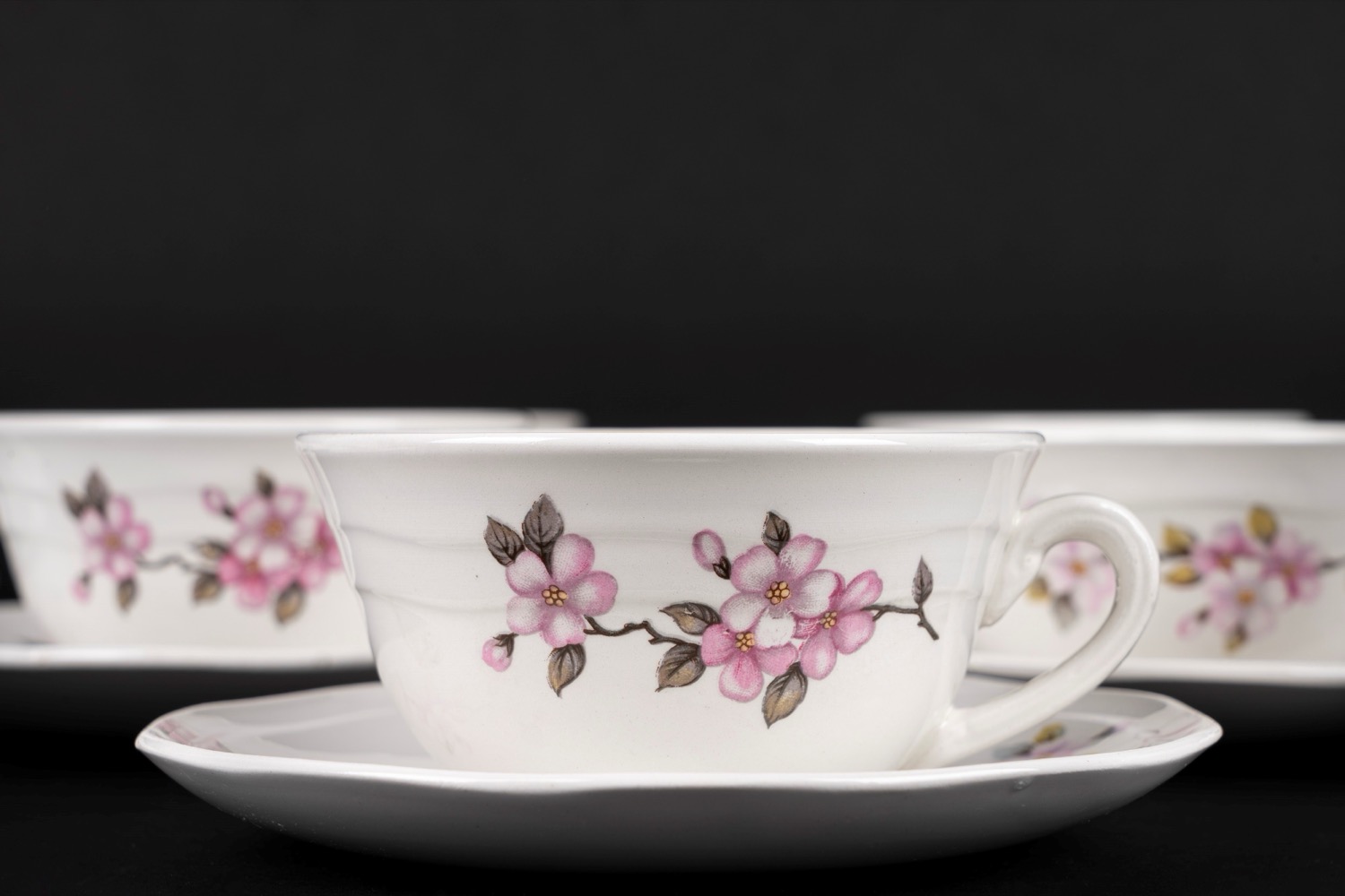 Servizio da te in porcellana bianca decorato con fiori di pesco, "Isolabella" Laveno, anni '30-'40 del Novecento