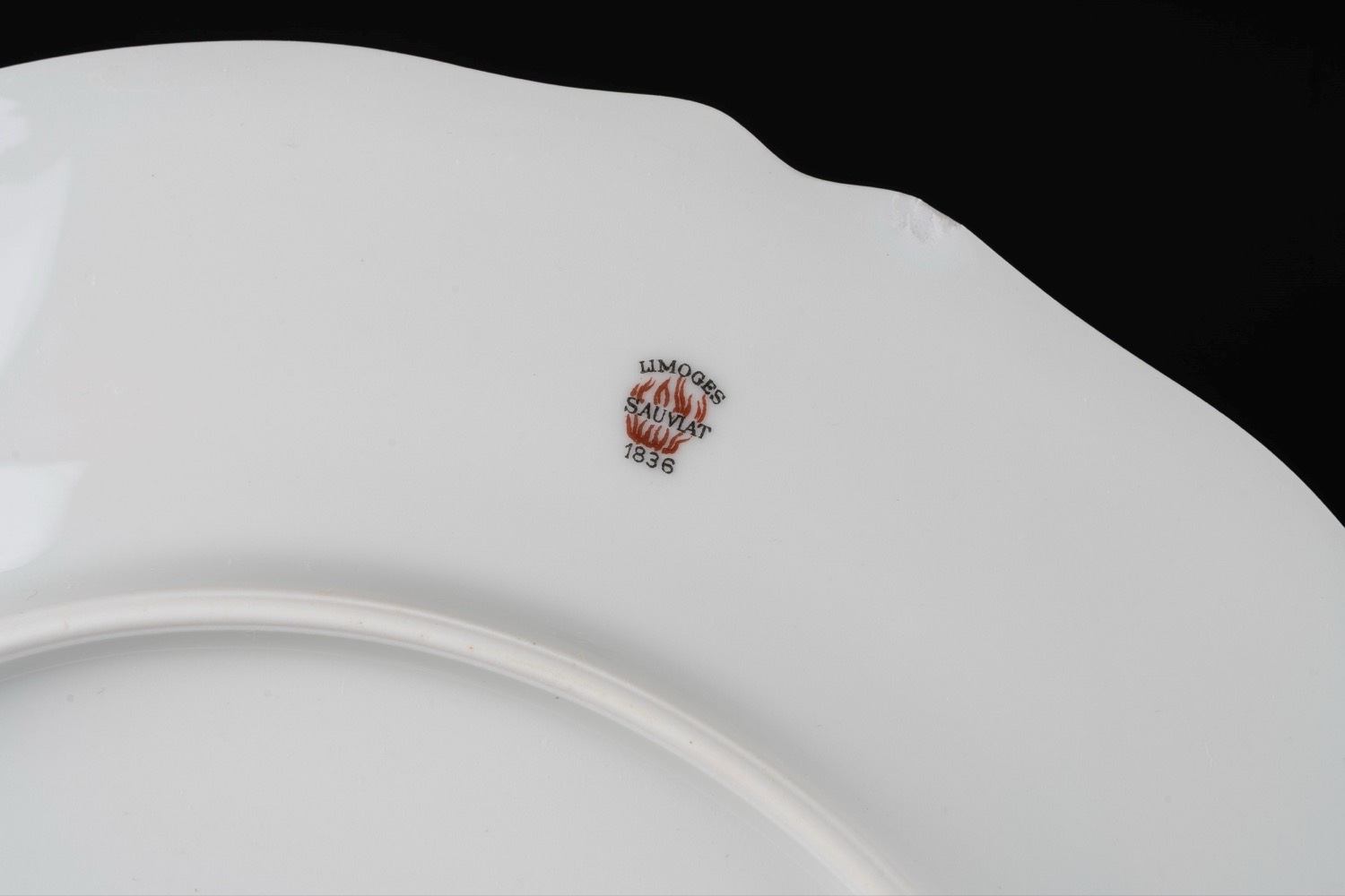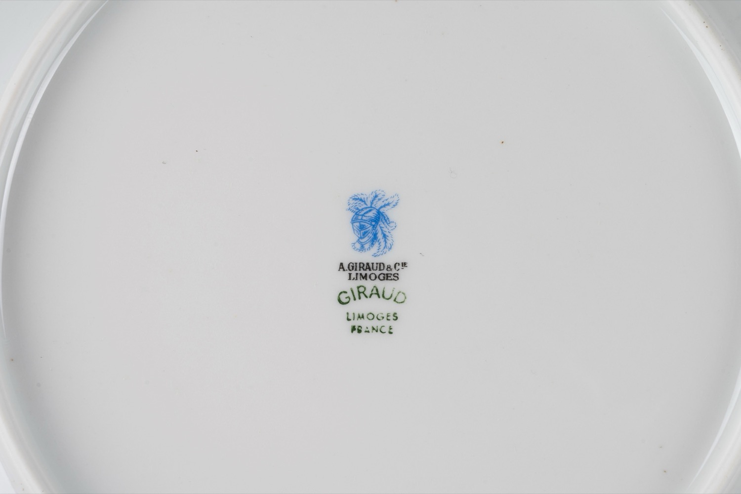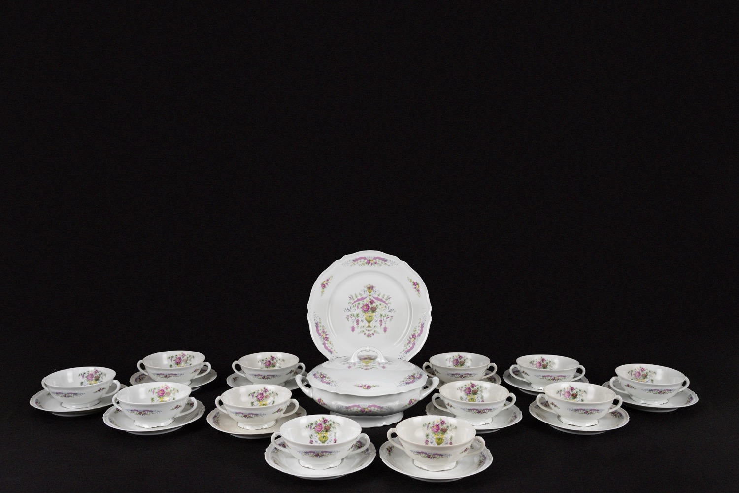 Servizio da consommè in porcellana bianca con decoro floreale rosa, A. Giraud, Limoges France
