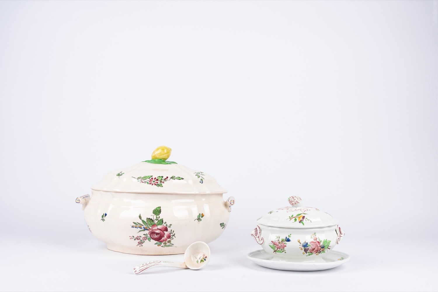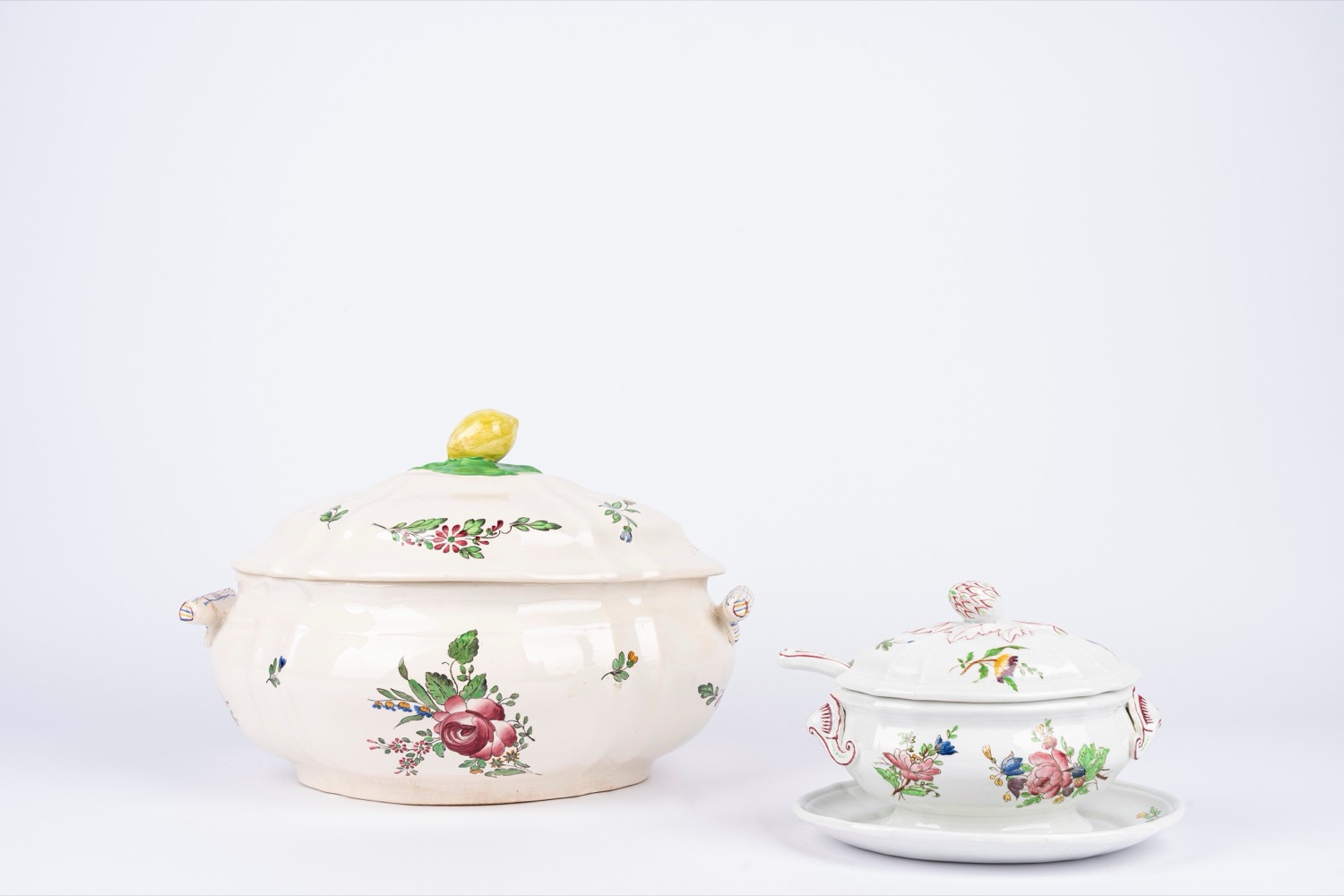 Zuppiera e salsiera in porcellana decorata in policromia, Strassbourg Richard
