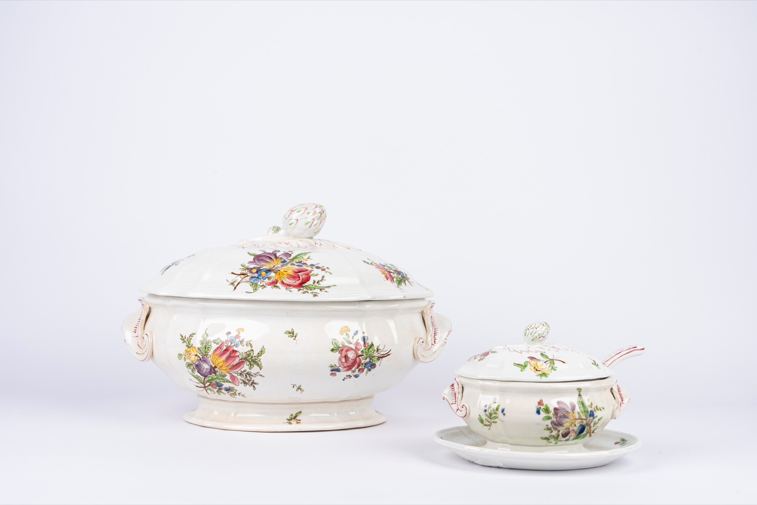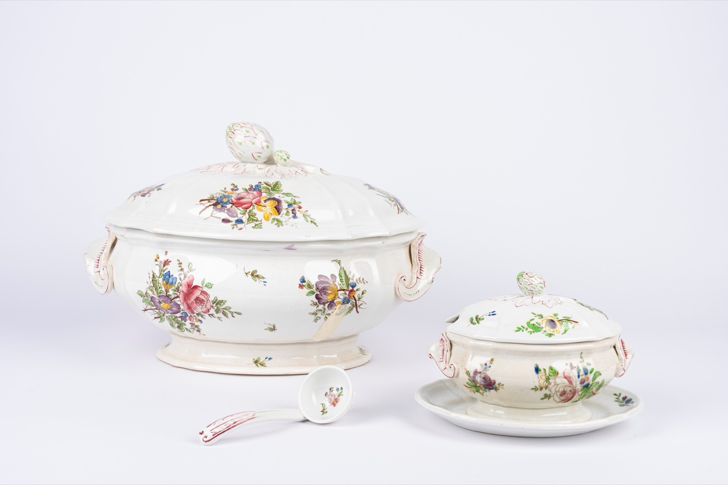 Grande zuppiera e salsiera in porcellana decorata in policromia, Strassbourg I. C. Richard, inizi secolo XX