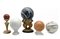 Lotto composto da cinque diverse sfere in marmi vari di cui una con sostegno a